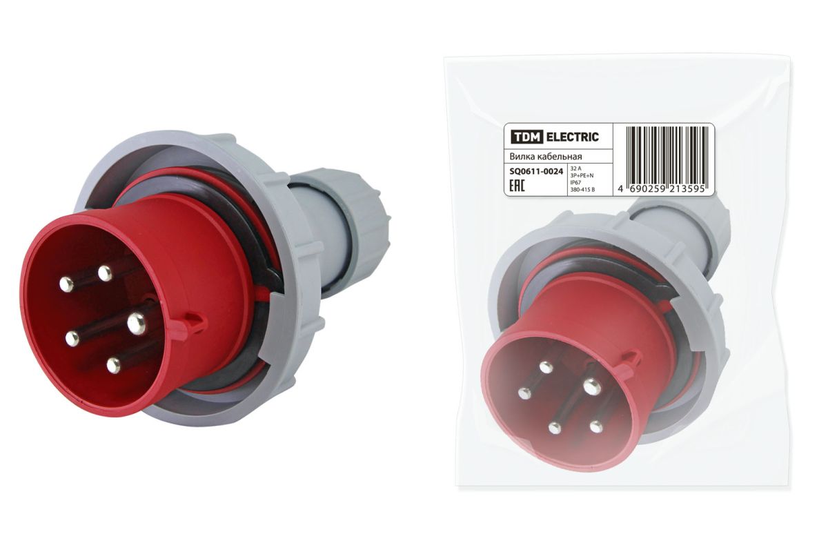 Читать все статьиВилка кабельная IP67 32А 3Р+РЕ+N 380В TDM