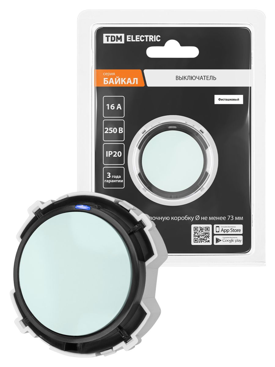 Выключатель 1-кл. 16А 250В кнопочный механизм фисташковый, «Байкал» TDM