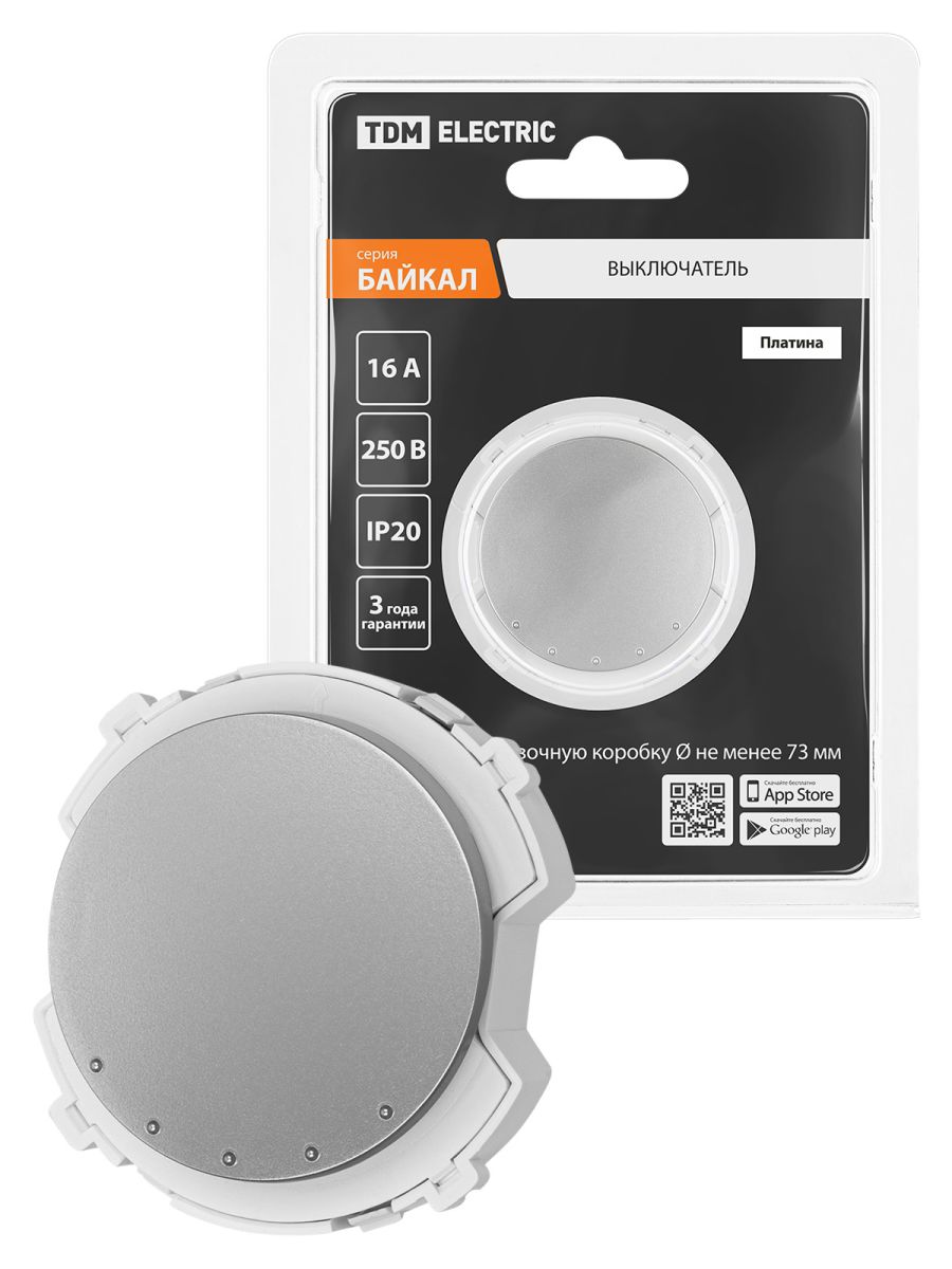 Выключатель 1-кл. 16А 250В проходной платина, «Байкал» TDM