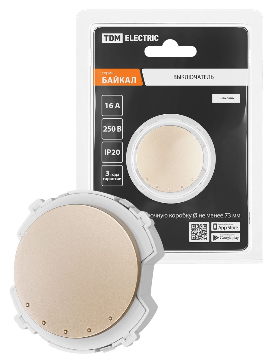 Выключатель 1-кл. 16А 250В проходной шампань, «Байкал» TDM