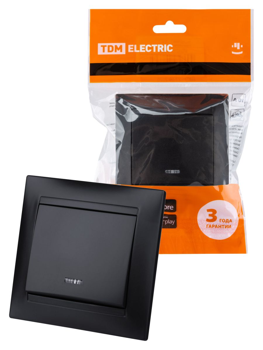Выключатель 1 кл. с подсветкой 10А графит «Лама» TDM