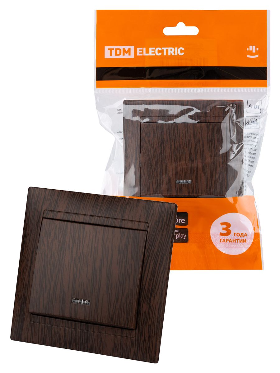 Выключатель 1 кл. с подсветкой 10А венге «Лама» TDM