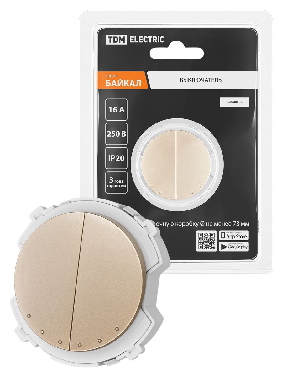 Читать все статьиВыключатель 2-кл. 16А 250В проходной шампань, «Байкал» TDM