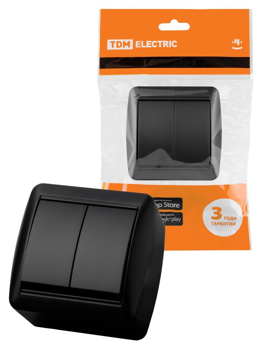 Каталог / ООО «ТДМ» / Товары TDM / 18-1 Электроустановочные изделия / 18.18.04 Серия "Селигер" IP44 (открытая установка) - цвет графит