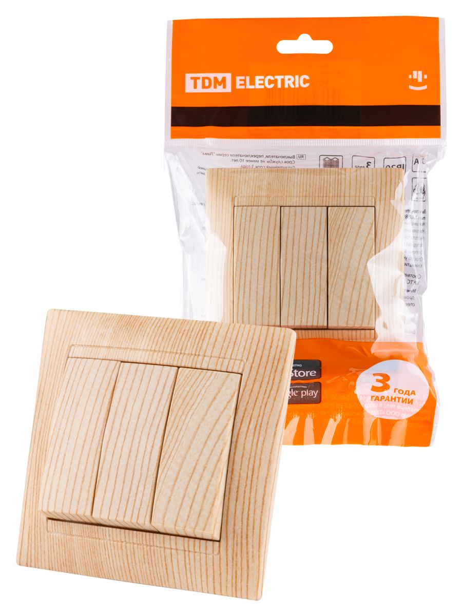 Выключатель 3-х кл. 10А сосна «Лама» TDM