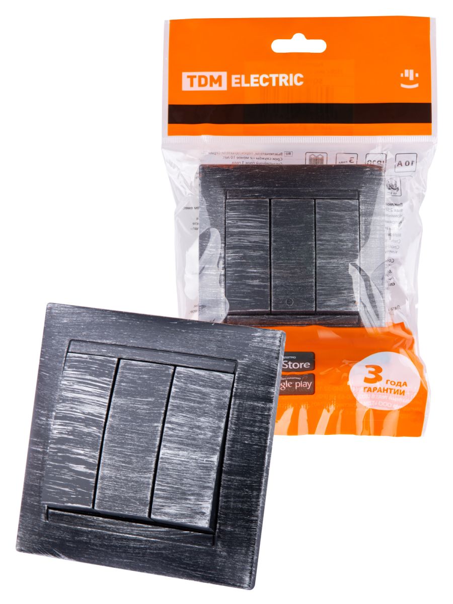 Выключатель 3-х кл. 10А старинное серебро «Лама» TDM