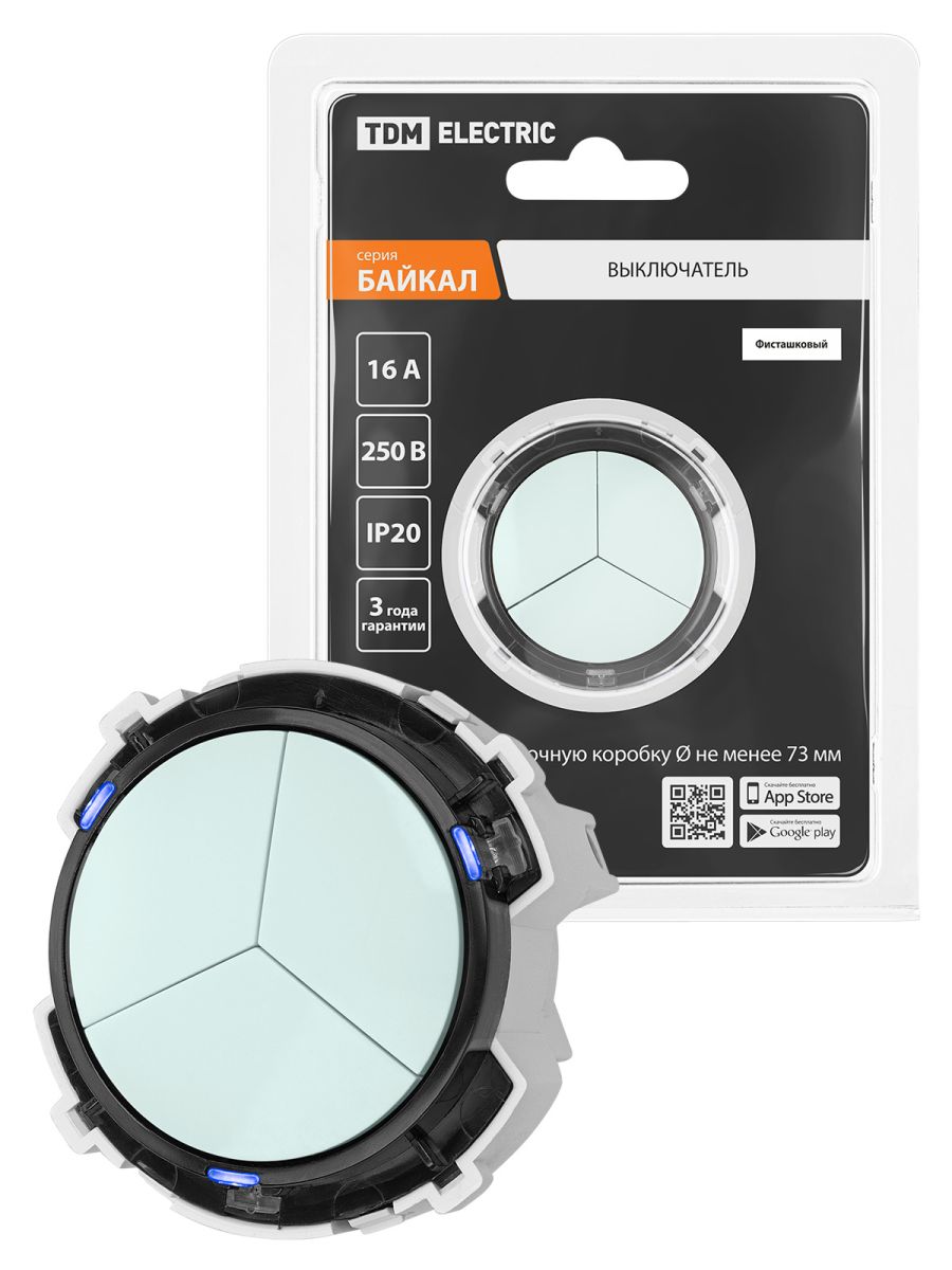 Выключатель 3-кл. 16А 250В кнопочный механизм фисташковый, «Байкал» TDM