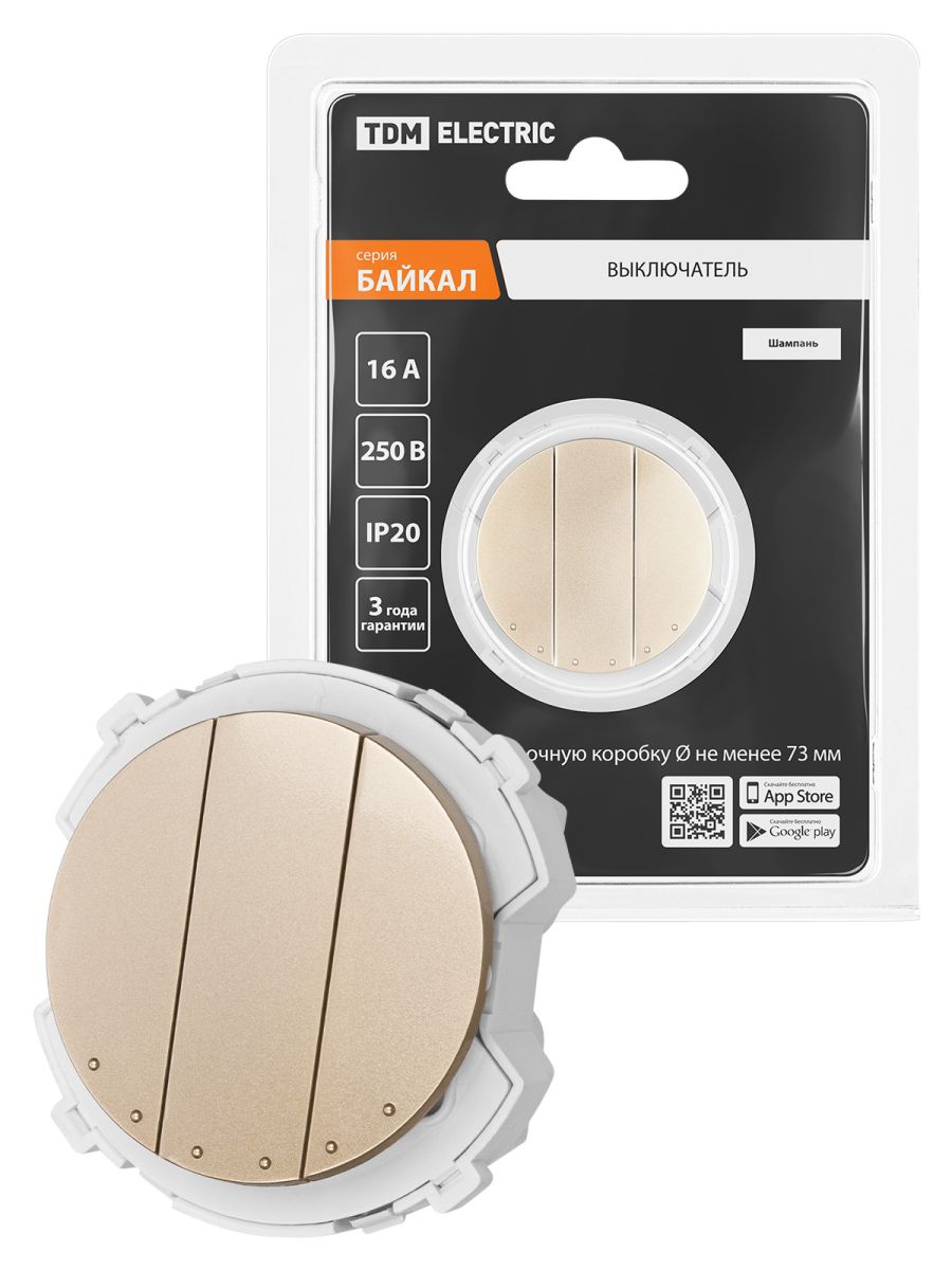 Выключатель 3-кл. 16А 250В шампань, «Байкал» TDM